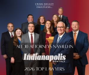 Each of the ten attorneys at Craig, Kelley & Faultless have been named in Indianapolis Monthly’s list of 2026 Top Lawyers. David W. Craig, Scott A. Faultless, William J. Kelley II, Alexander R. Craig, Samantha Stevens, Christopher Barry, Jacob Kotter, Sidney Lewellen, Whitney Coker and Krysten M. LeFavour are named…