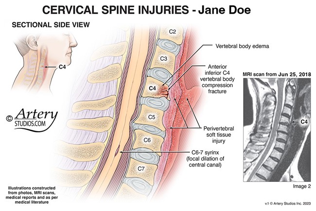 Diagram provided by Artery Studios, Inc. showing a cervical spine injury